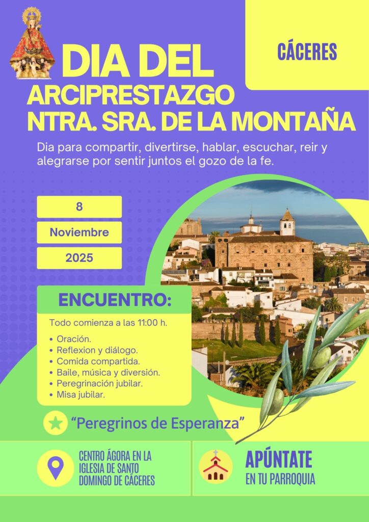 “Peregrinos de esperanza”. Bajo este lema, el próximo sábado 8 de noviembre de 2025, las parroquias del arciprestazgo de Cáceres se darán cita en el Centro Ágora de los Franciscanos con Santo Domingo para celebrar el Jubileo con motivo del Año Santo de la Encarnación. Una jornada marcada por la convivencia fraterna, la reflexión sinodal y la celebración compartida de la fe.