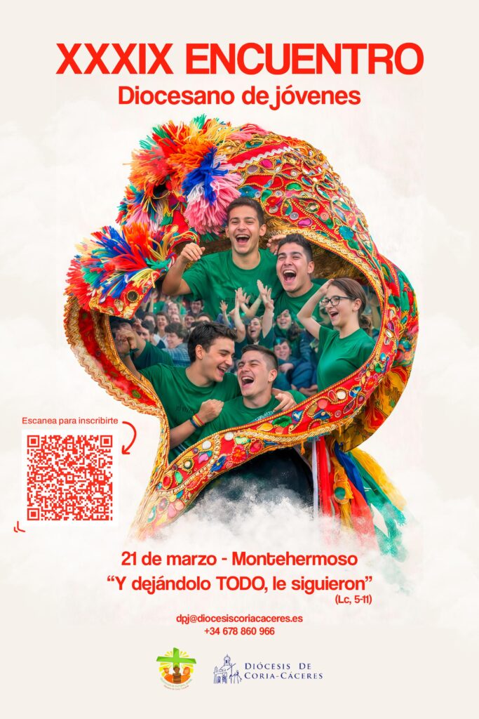 La Diócesis de Coria-Cáceres celebrará el próximo 21 de marzo una nueva edición del Encuentro Diocesano de Jóvenes, una cita ya consolidada que reunirá a adolescentes y jóvenes a partir de los 14 años en una gran jornada de convivencia, fe y celebración. En esta ocasión, será la localidad de Montehermoso la que acoja a los participantes en lo que se presenta como una auténtica fiesta de la juventud diocesana.