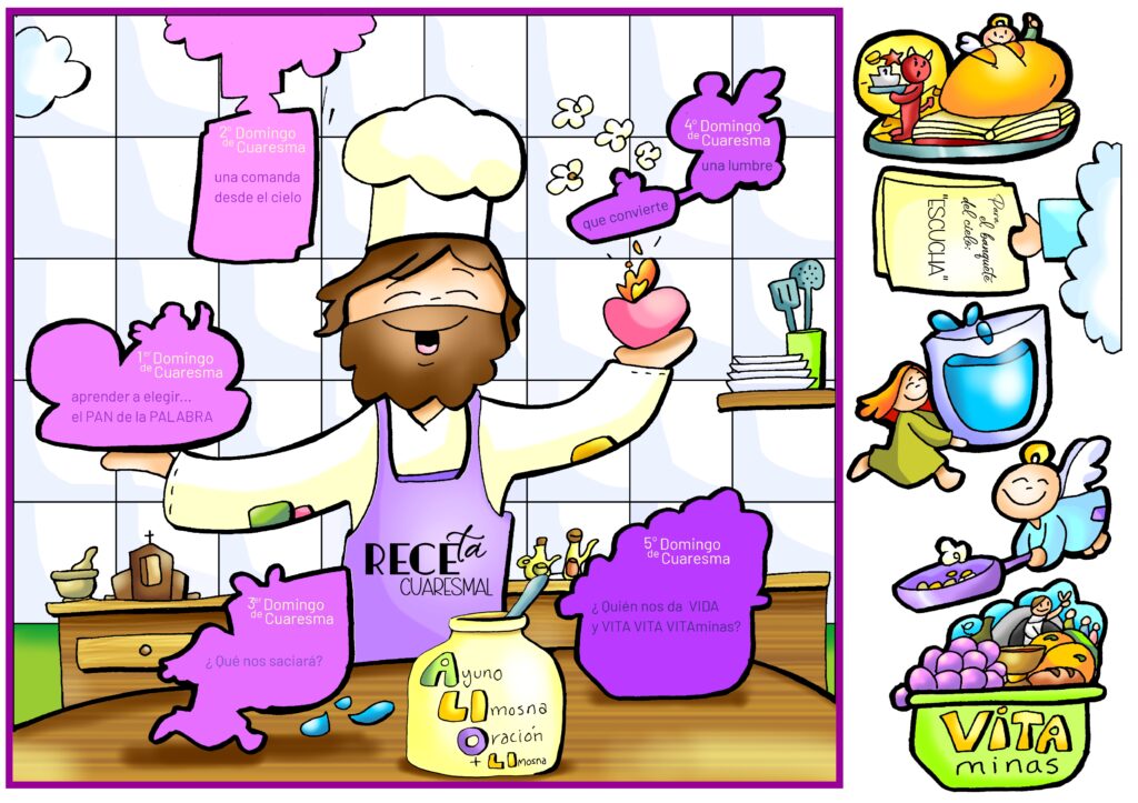 La propuesta parte de una idea sencilla: en esta Cuaresma los niños están invitados a “dejar que Jesús cocine su vida”. Cada domingo la liturgia ofrece un ingrediente distinto que da sabor a la existencia cristiana.